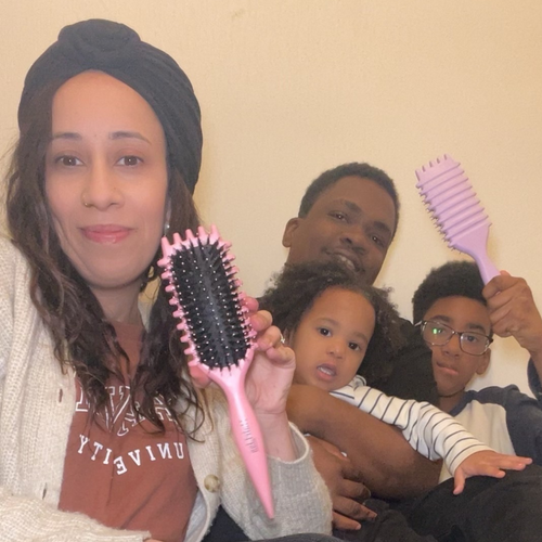 Mes filles de 7 et 9 ans sont métisses et ont les cheveux si différents. Cette brosse est magique! Elles adorent et nous aussi 😉
