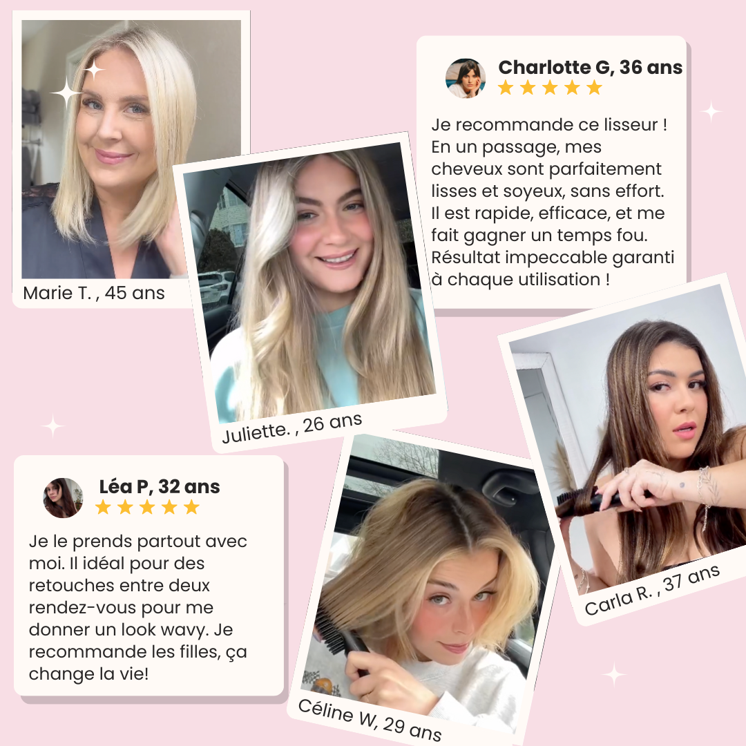 ✨ S traightening Express: Get straight hair in 3 minutes with the HairLiss portable straightening brush, wherever you are: at home, in the car or on the go.